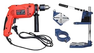 CHESTON 13mm 650 watts Impact Drill Machine Reversible Hammer Driver Variable Speed Screwdriver (Red) with Variable Speed for Wall, Metal, Wood Drilling With Bench Press Mini Drill Machine Stand