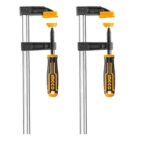 INGCO 2PCS Pack F Clamps (50x150mm), Steel f clamp with Rubberized Handle and Surface Protection PVC Cover for Better Grip Metal F Clamps for Woodworking Glass and Welding Works