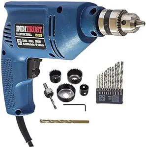 Inditrust New 6-Month Warranty 500w Left Right Rotation Drill machine 10mm 13pc HSS Bit 1pc masonry bit and 6pc hole saw set Pistol Grip Drill
