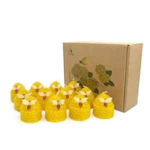 Lacaser Small Beehive Candle Bulk Set with Little Bee Decor, Natural Beeswax Yellow Votive Candle Set, Gift Box Pack of 12pcs, Unscented&Smokeless &Dripless Colored Candles Set, Dia 1.77″ Each