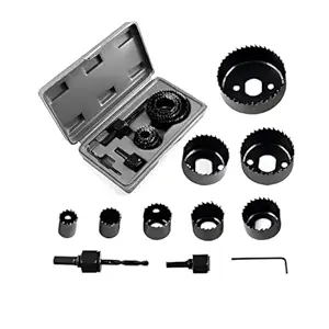 Natation 11 pcs Wood hole saw set drill bit cutter | Carbon Steel Metal Alloys Round Circular Cutter (19-64mm)