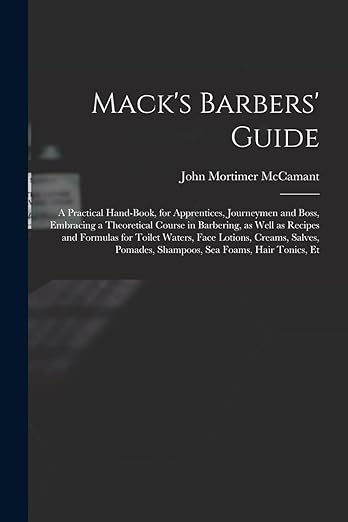 Mack’s Barbers’ Guide; a Practical Hand-book, for Apprentices, Journeymen and Boss, Embracing a Theoretical Course in Barbering, as Well as Recipes … Pomades, Shampoos, sea Foams, Hair Tonics, Et