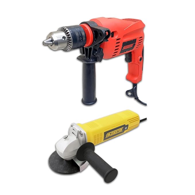 Cheston Impact Drill Machine 13mm Chuck with Reversible and Variable Speed Screwdriver and Hammer + 850W 4-Inch Angle Grinder for Polishing Cutting Grinding Works on Metal Wood Wall