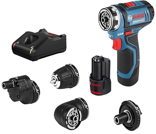 Bosch GSR 12V-15 FC Heavy Duty Cordless Drill, 19 mm, 1/4″ Tool Holder, FlexiCLick System, 0.6 kg, + 2 x battery GBA 12V 2.0Ah, Quick charger GAL 12V-40 Professional & Accessories, 1 Year Warranty