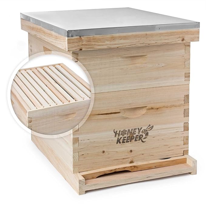 Versace Honey Keeper Beehive 20 Frame Complete Box Kit with Metal Roof for Langstroth Beekeeping (10 Deep and 10 Medium)
